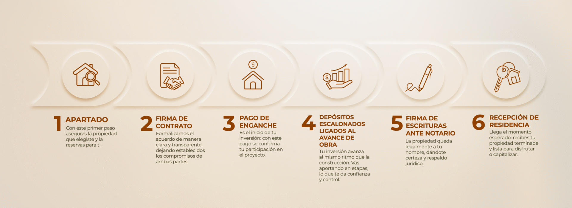 Cada etapa de construcción está vinculada a un hito técnico comprobable. El comprador puede verificar el avance mediante visitas o reportes enviados por el desarrollador.